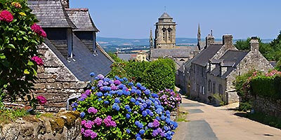 Ce n’est pas par hasard si de grands réalisateurs ont choisi ce village de granit comme cadre d’action à des œuvres comme Tess, Chouans, Un long dimanche de fiançailles… Classée Petite Cité de Caractère, Locronan est typique du patrimoine breton. Cette minéralité et ce caractère bien trempé sont adoucis par l’explosion de couleurs florales ; les fameux hortensias qui illuminent comme nulle part ailleurs la grand-place et ses petites rues authentiques et charmantes.