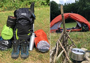 Des chaussures de randonnée, des tentes de bivouac, des sacs de couchage, ainsi que des matelas et tout le nécessaire pour la cuisine : réchaud, popote,...
